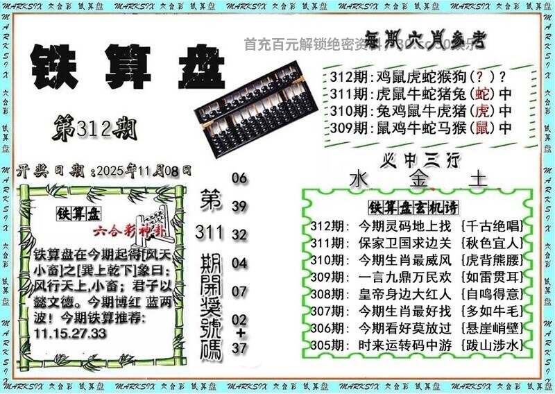 | 311期 | 1.2.3 | 0.1.3.7.8 | 开:蛇37中 |